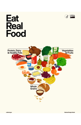 Le 7 janvier dernier, aux États-Unis, la nouvelle version des Dietary Guidelines for Americans 2025-2030 a été publiée, accompagnée d’une pyramide alimentaire entièrement repensée. Visuellement, elle est inversée par rapport à la pyramide classique, et s’accompagne d’un message fort : « Eat real food », c’est-à-dire « mangez de vrais aliments », une invitation à réduire la consommation d’aliments ultra-transformés.