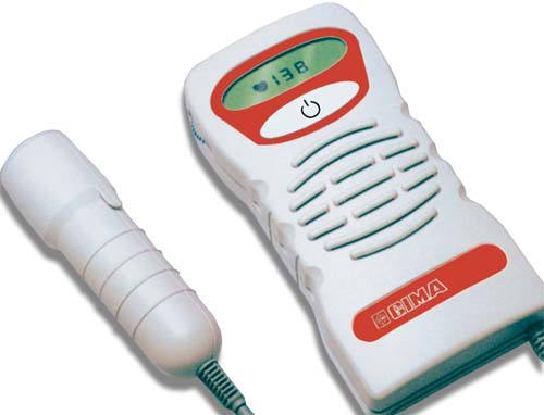 Doppler foetal de poche léger GIMA D2003 avec écran, une haute sensibilité et avec un capteur foetal de 2 MHz, idéal pour la surveillance foetale prénatale de routine par les médecins généralistes ou sages-femmes.