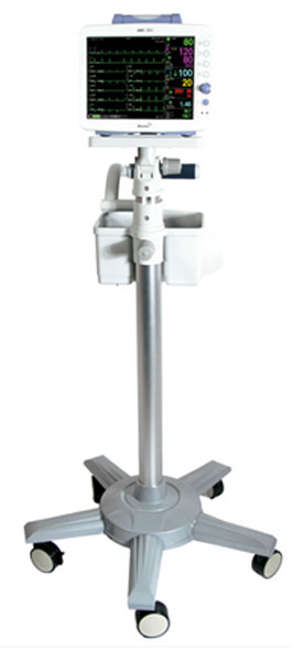 Chariot pratique, stable et robuste avec un panier pour les moniteurs BM3 - BM5 - BM7. Hauteur réglable, panier fourni.