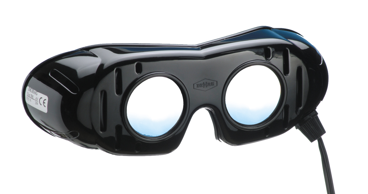 Instrument de diagnostic simple à utiliser pour chercher les nystagmus spontanés ou provoqués. Lentille biconvexe fixes + dioptres de 18. Les lunettes de Frenzel pour nystagmus doivent uniquement être raccordées à un transformateur (optional) dont la tension est inférieure à 4,2 V conformément aux normes de sécurité 93/42/CEE (voir « GIMA6 », page 107). Fabriquées en Allemagne.