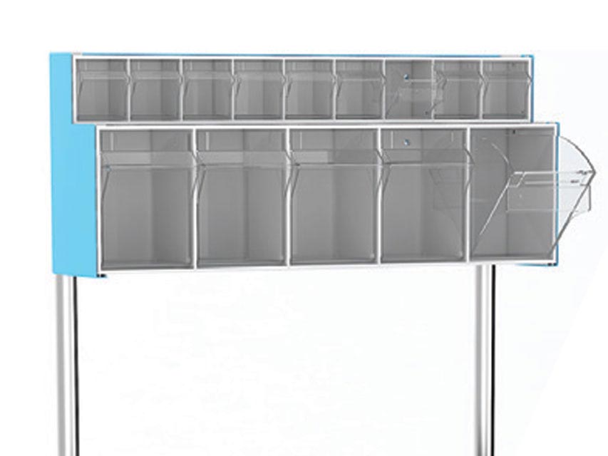 Étagère supérieure à 14 tiroirs (9 + 5) pour kart pediatrique.