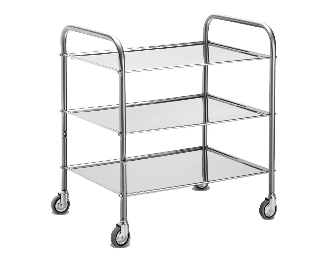 Chariot Lancart Ter, en acier inoxydable, à 3 étagères et monté sur roulettes de Ø 80 mm.