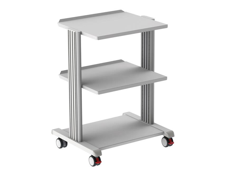 Chariot avec 3 étagères, solide et au design moderne. Équipé de 4 roulettes pivotantes de 65 mm (2 avec frein).