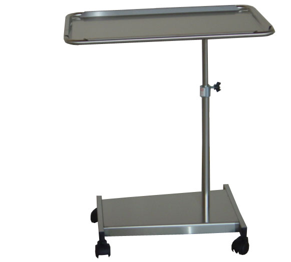 Table Mayo avec plateau inox amovible, base inox AISI 304, 4 roulettes et hauteur réglable.