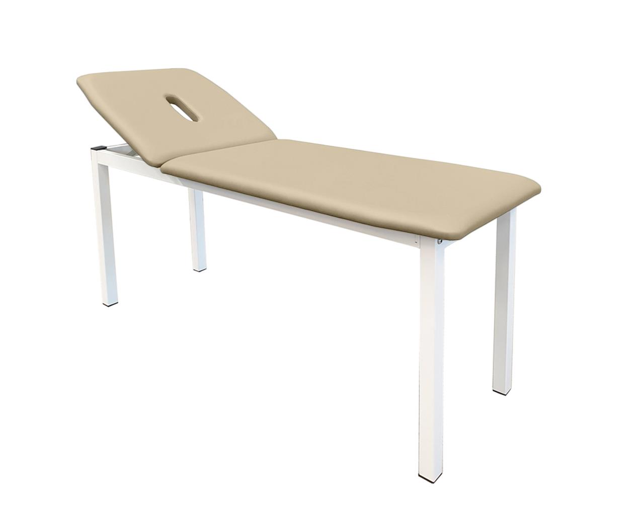 Rembourrage en mousse haute densité et revêtement en similicuir de finition supérieure avec des propriétés ignifuges et résistance aux désinfectants, à l'urine et au sang. La structure peinte avec une poudre époxy est résistante aux rayures et à la corrosion.