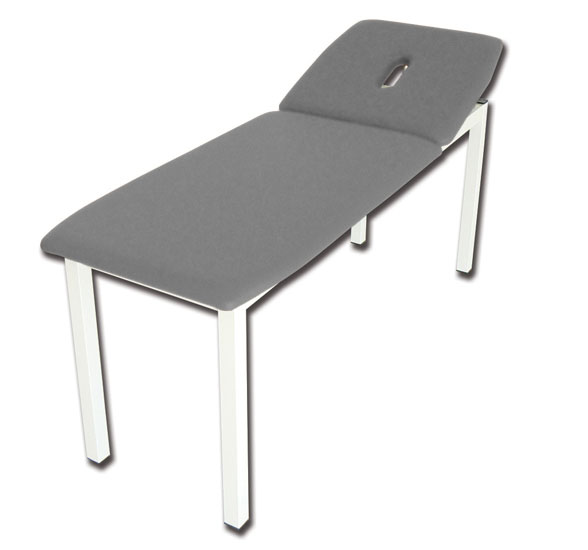 Table professionnelle d’examen et de traitement à section mobile et réglage manuel. Structure métallique amovible robuste recouverte de poudre époxy non corrosive résistante aux rayures. La forme de la section facilite la manipulation du patient. La section de tête présente une large ouverture bouche-nez. Rembourrage en mousse haute densité. Finition de la housse supérieure en similicuir ignifuge de haute qualité. Le vinyle est particulièrement résistant aux désinfectants, à l’urine et au sang.