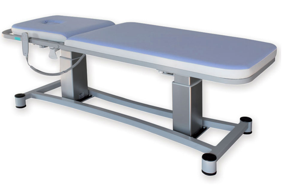 Réglable en hauteur grâce à deux colonnes électriques qui peuvent bouger en même temps ou séparément (pour permettre les positions de Trendelenburg et de Trendelenburg inversée) grâce une commande à bouton.