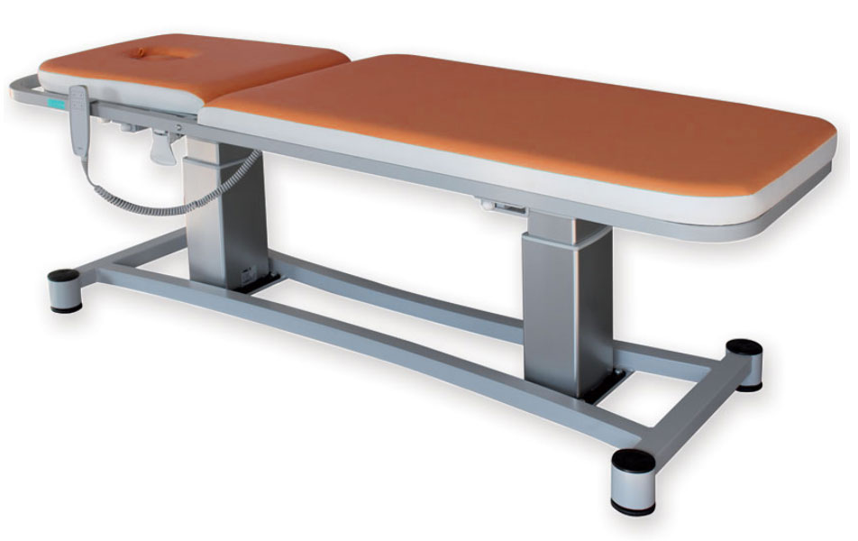 Réglable en hauteur grâce à deux colonnes électriques qui peuvent bouger en même temps ou séparément (pour permettre les positions de Trendelenburg et de Trendelenburg inversée) grâce une commande à bouton.