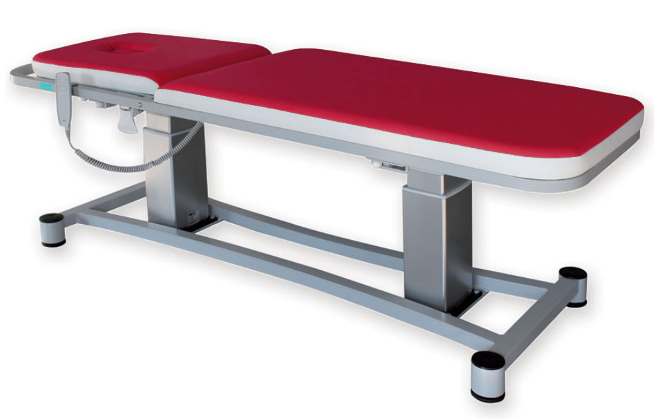 Réglable en hauteur grâce à deux colonnes électriques qui peuvent bouger en même temps ou séparément (pour permettre les positions de Trendelenburg et de Trendelenburg inversée) grâce une commande à bouton.