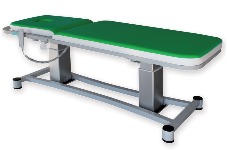 Réglable en hauteur grâce à deux colonnes électriques qui peuvent bouger en même temps ou séparément (pour permettre les positions de Trendelenburg et de Trendelenburg inversée) grâce une commande à bouton.