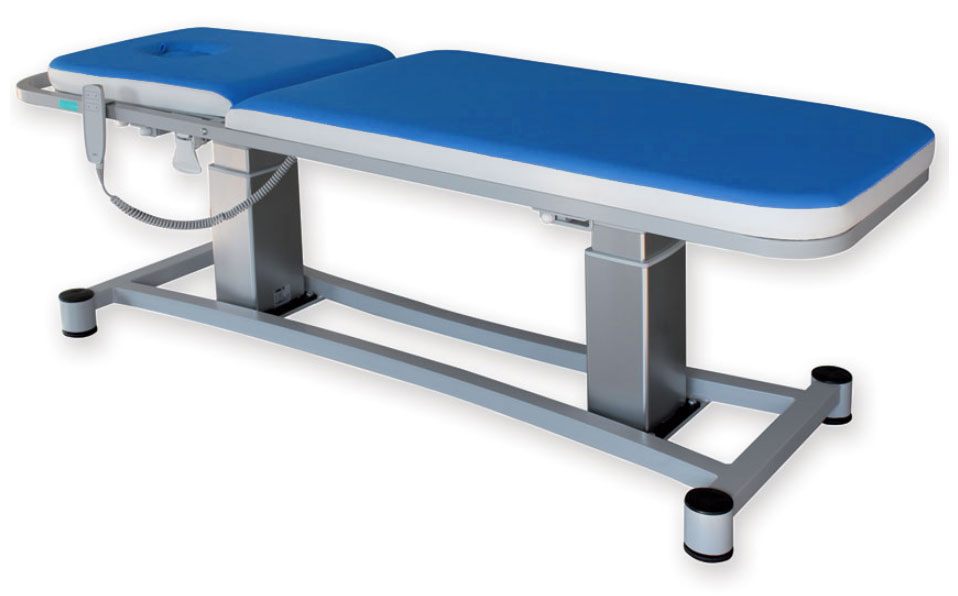 Réglable en hauteur grâce à deux colonnes électriques qui peuvent bouger en même temps ou séparément (pour permettre les positions de Trendelenburg et de Trendelenburg inversée) grâce une commande à bouton.
