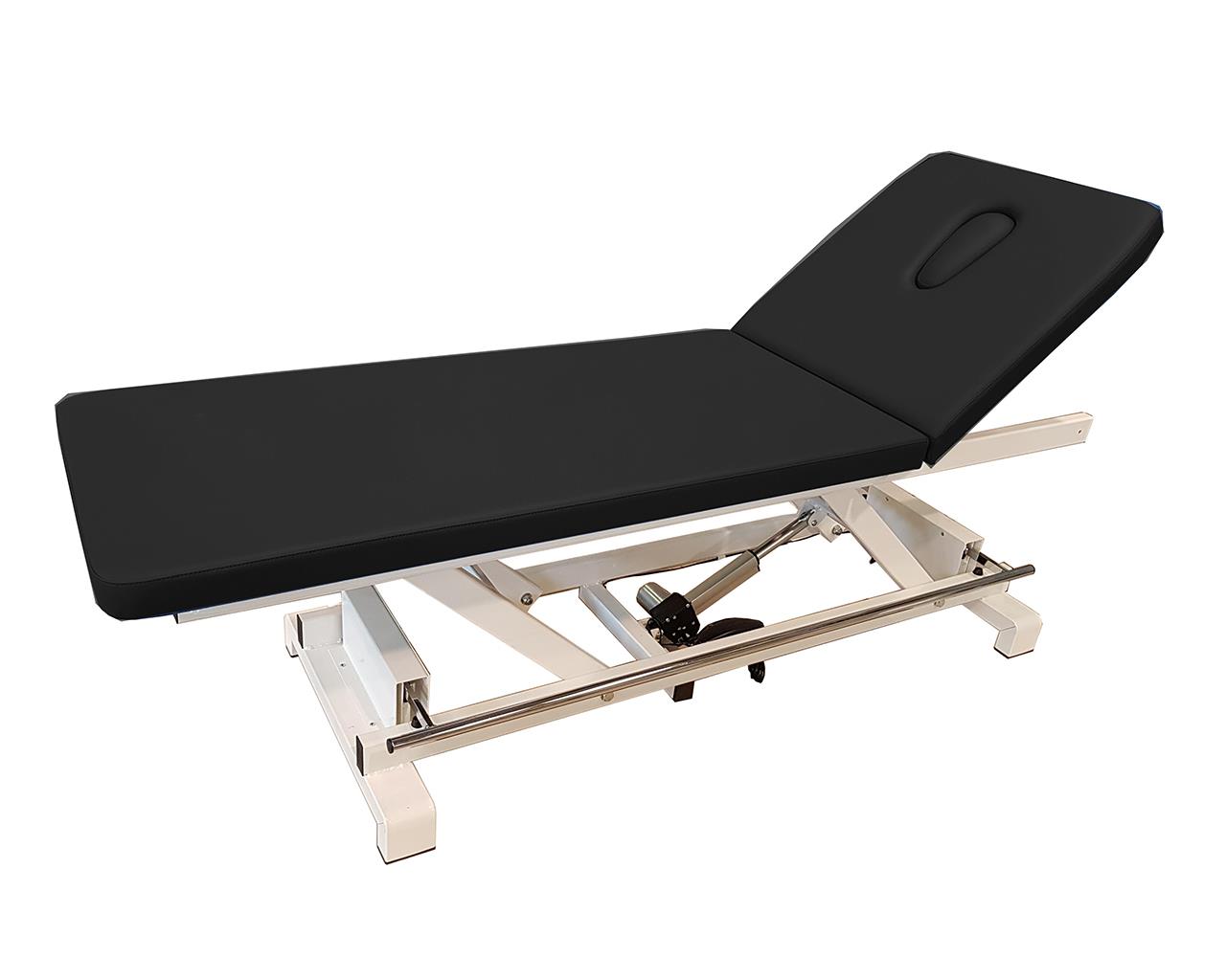 Lit pour examens et soins médicaux, robuste et très stable. Sa hauteur est réglable par une barre périmétrique.