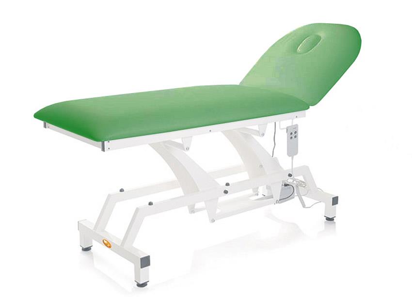 Divan d’examen Lytus avec hauteur et dossier réglables électriquement grâce à 2 moteurs indépendants (un pour la hauteur et l’autre pour le dossier). Structure tubulaire en acier peint blanc. Capitonnage en polyuréthane densité 25 et hauteur 5 cm. Revêtement en similicuir lavable, autoextinguible 1IM.