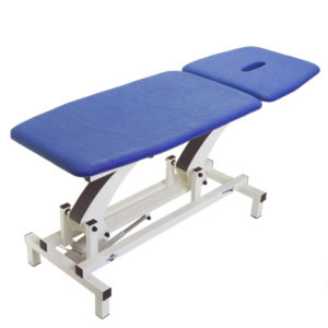 Table d'examen et traitement de haute stabilité. Hauteur réglable électriquement par un interrupteur au pied (basse tension 24 V). Caractéristiques: une section mobile, section de tête réglable par ressort à gaz (avec ouverture bouche-nez) et section de jambes fixe. L'ample section de tête est réglable en avant/arrière et sert de dossier. Structure robuste, toutes les parties mobiles sont équipées des composants autolubrifiants pour éviter une usure et des bruits précoces.
