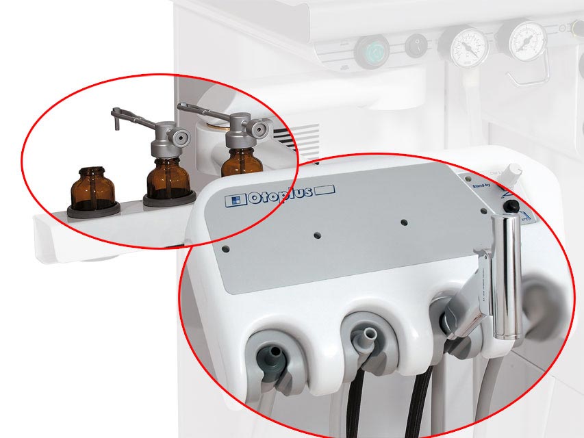 Kit de médication seringue pour Otoplus: composé de 2 atomiseurs (pour liquide et poudre) et 3 ampoules en verre foncé.