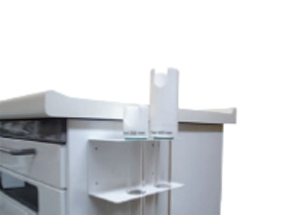Support d'endoscope avec 2 tubes de 50 cm de long, un ouvert aux 2 extrémités, l'autre fermé en bas utilisable pour stérilisation à froid. Diamètre 2,4 cm