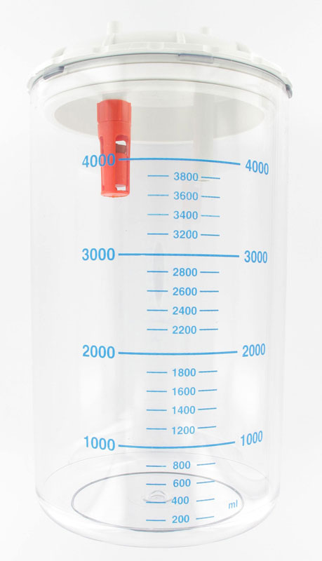 Bocal de 4 L autoclavable à 121°C avec couvercle et valve de trop-plein. À utiliser avec les aspirateurs 4 l.