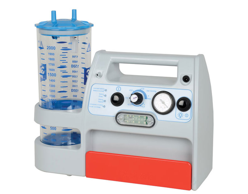 Aspirateur de mucosités portatif professionnel à haut débit, fonctionne avec des batteries rechargeables incorporées à 12 V (automatique) ou directement sur secteur (110-230 V) pendant la charge des batteries. Jusqu’à 45 minutes d’autonomie avec batteries complètement chargées. Fabriqué en Italie.