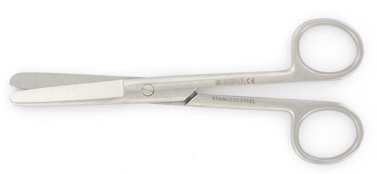 Ciseaux droits à bouts ronds/mousses, en acier inoxydable.