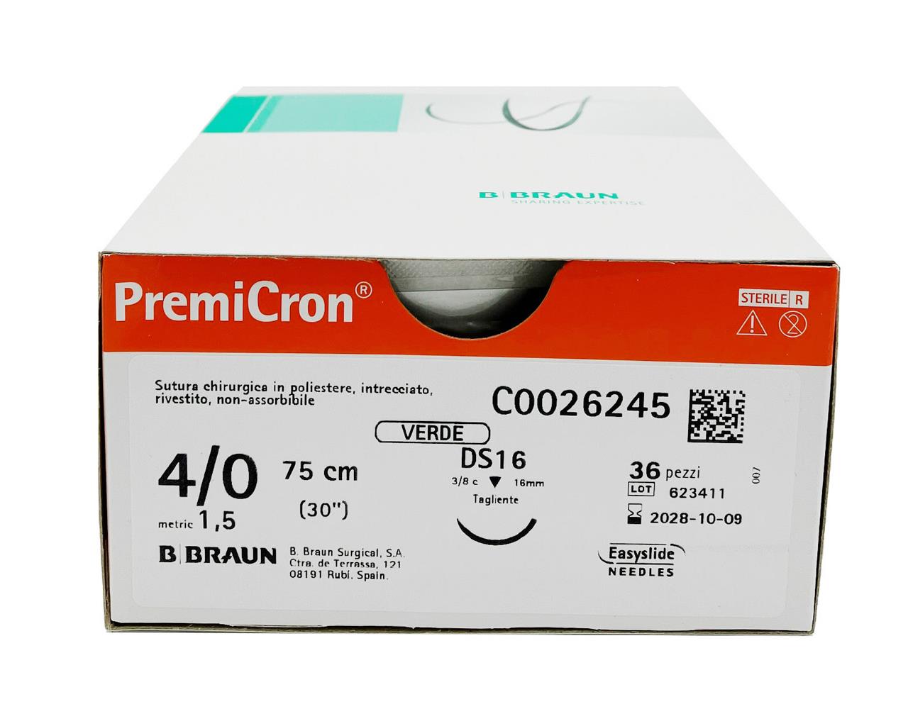 en polyester téréphtalate, aiguille 3/8 de 24 mm, USP 3/0 - fils vert de 75 cm