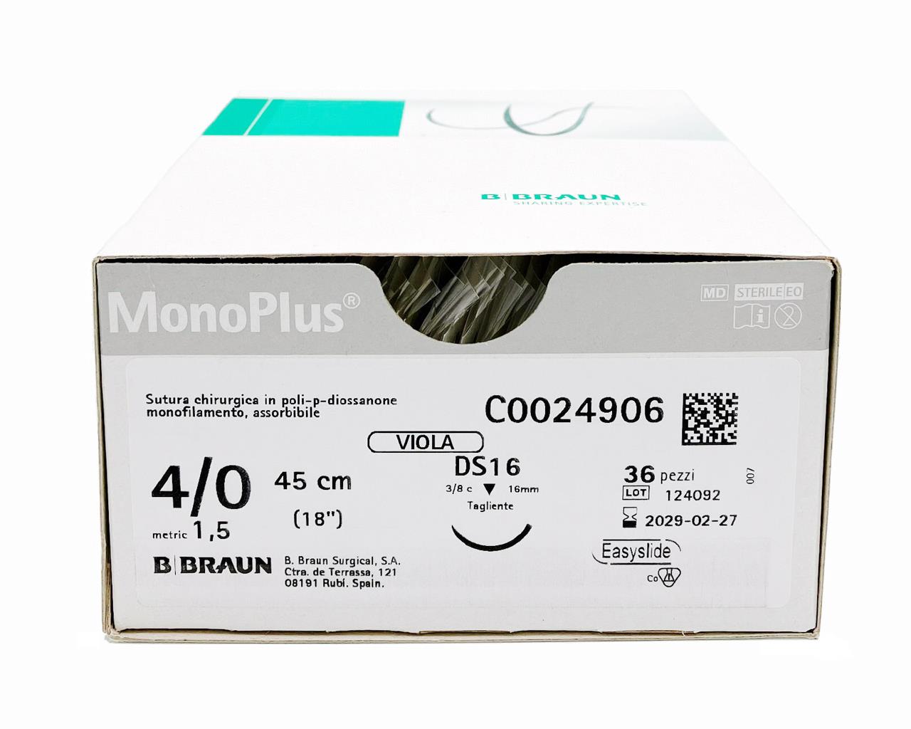 MonoPlus® de B. Braun est une sutere monofilament synthétique résorbable à long terme, composée de polydioxanone. MonoPlus® permet une excellente maniabilité en combinaison avec une grande résistance aux nœuds. Parfaite pour toutes les indications où un soutien prolongé de la plaie pendant plus de 4 semaines est souhaitable.