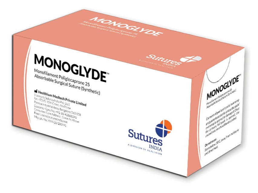 Monoglyde est une suture résorbable composée d’un monofil de polyglécaprone 25.