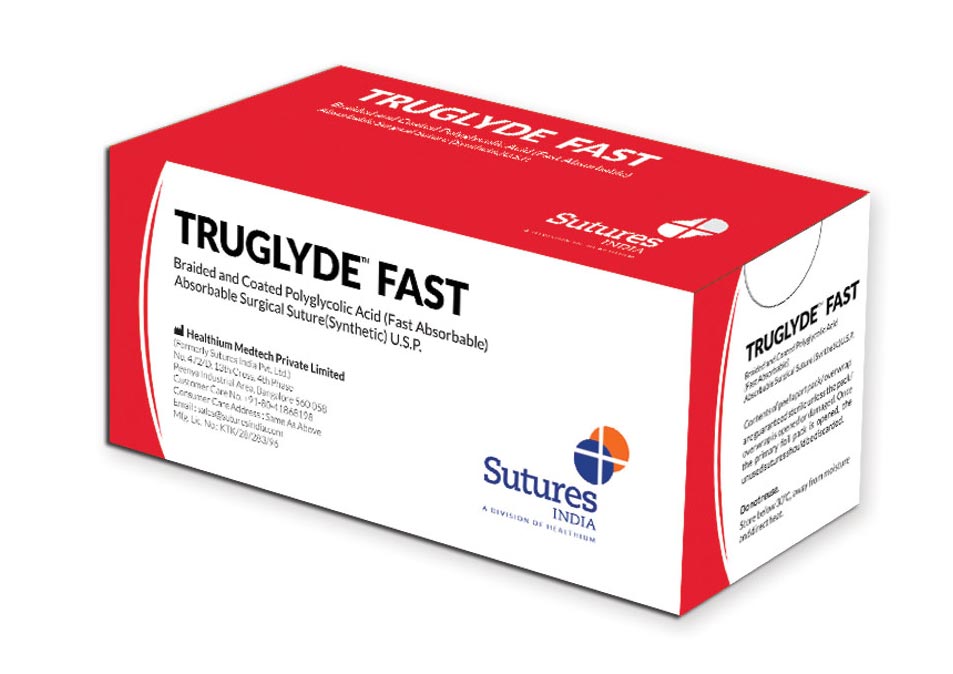 Sutures résorbables Truglyde Fast avec acide polyglycolique aiguille 3/8 de 20 mm, USP 3/0 – incolore