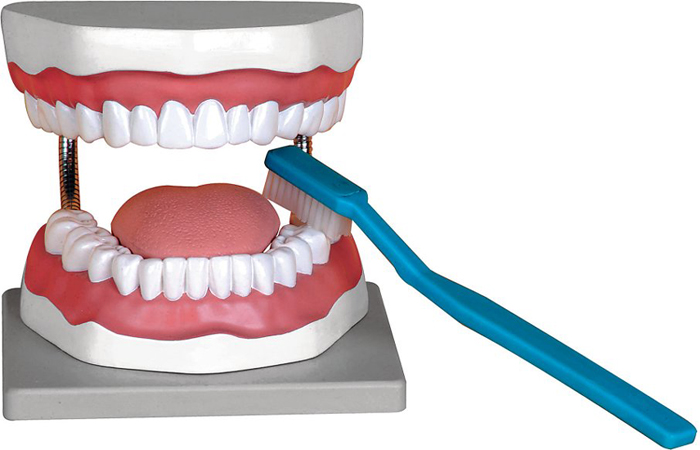 Modèle à l'échelle 3/1 pratique pour enseigner la façon correcte de se brosser les dents. Une brosse à dents géante est incluse. Montée sur un support.