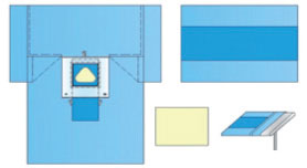 Kit stérile à usage unique, prêt à utiliser, contenant tous les champs nécessaires pour une opération chirurgicale de coupe césarienne.