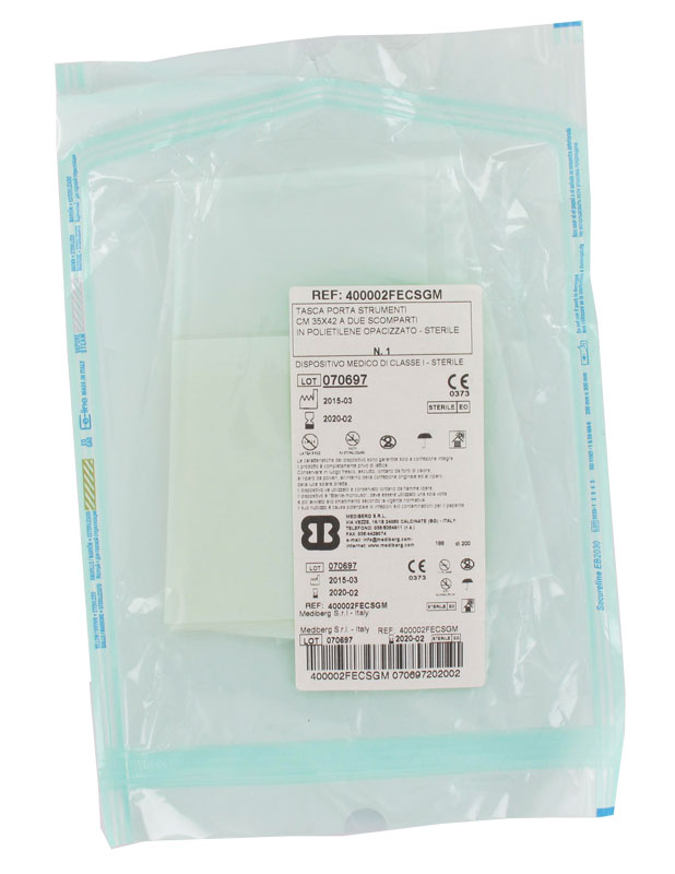 Poche en polyéthylène opaque pour insturments. Adhésive, stérile et avec 2 subdivisions.
