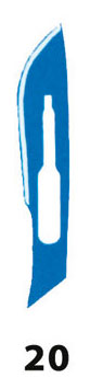 Lames usage unique stériles N°20 en acier inoxydable. Produit en règle avec BRITISH STANDARDS BS 2982, 5194 et ISO 7740.