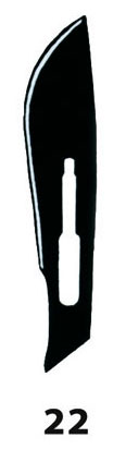 Lames usage unique stériles N°22 en fibre de carbone. Produit en règle avec BRITISH STANDARDS BS 2982, 5194 et ISO 7740.