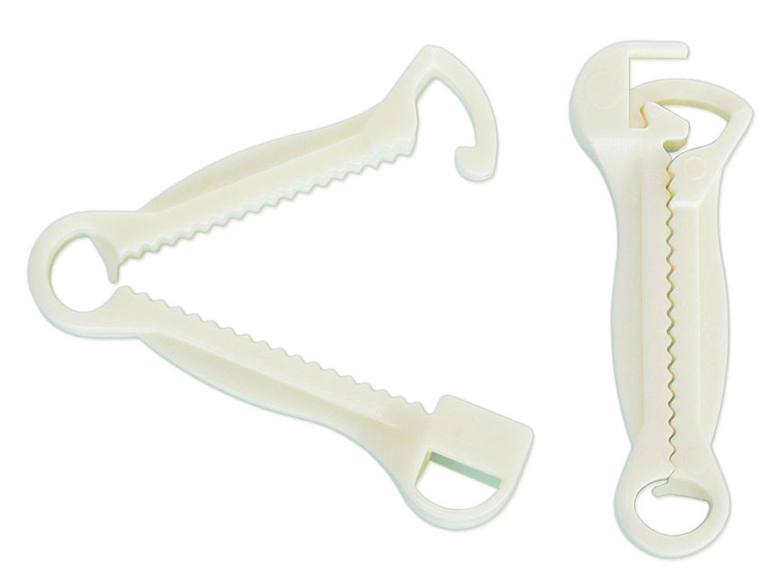 Pinces ombilicales jetables de grande taille permettant une fixation adéquate de tous les cordons ombilicaux et évitant leur glissement hors du peigne de fermeture.