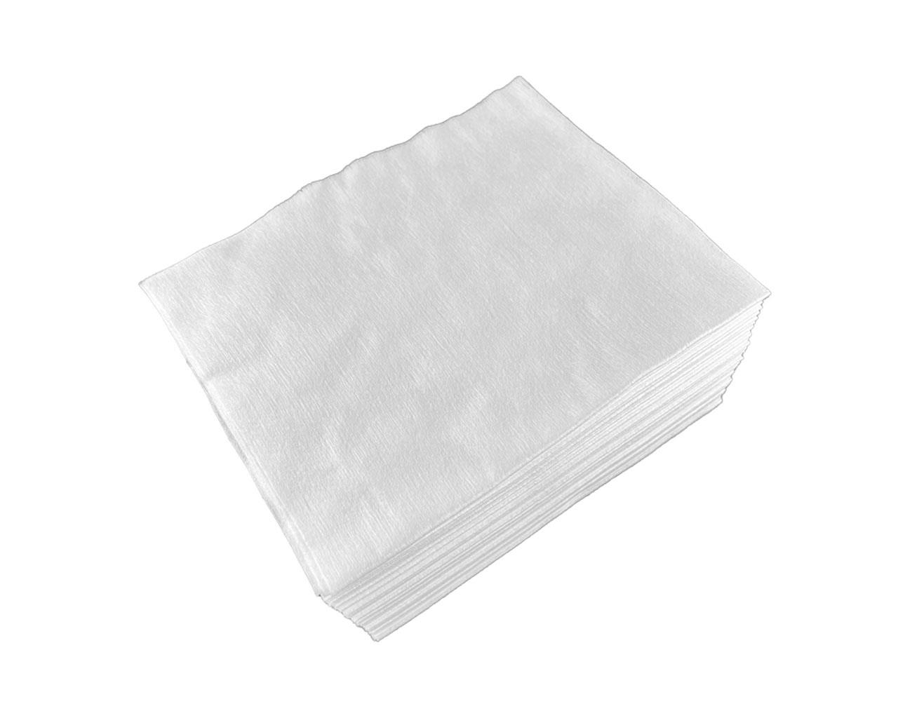 Lingettes absorbantes blanches en non tissé spunlace, un matériau souple et absorbant. Idéales pour l'hygiène et le soin des patients.