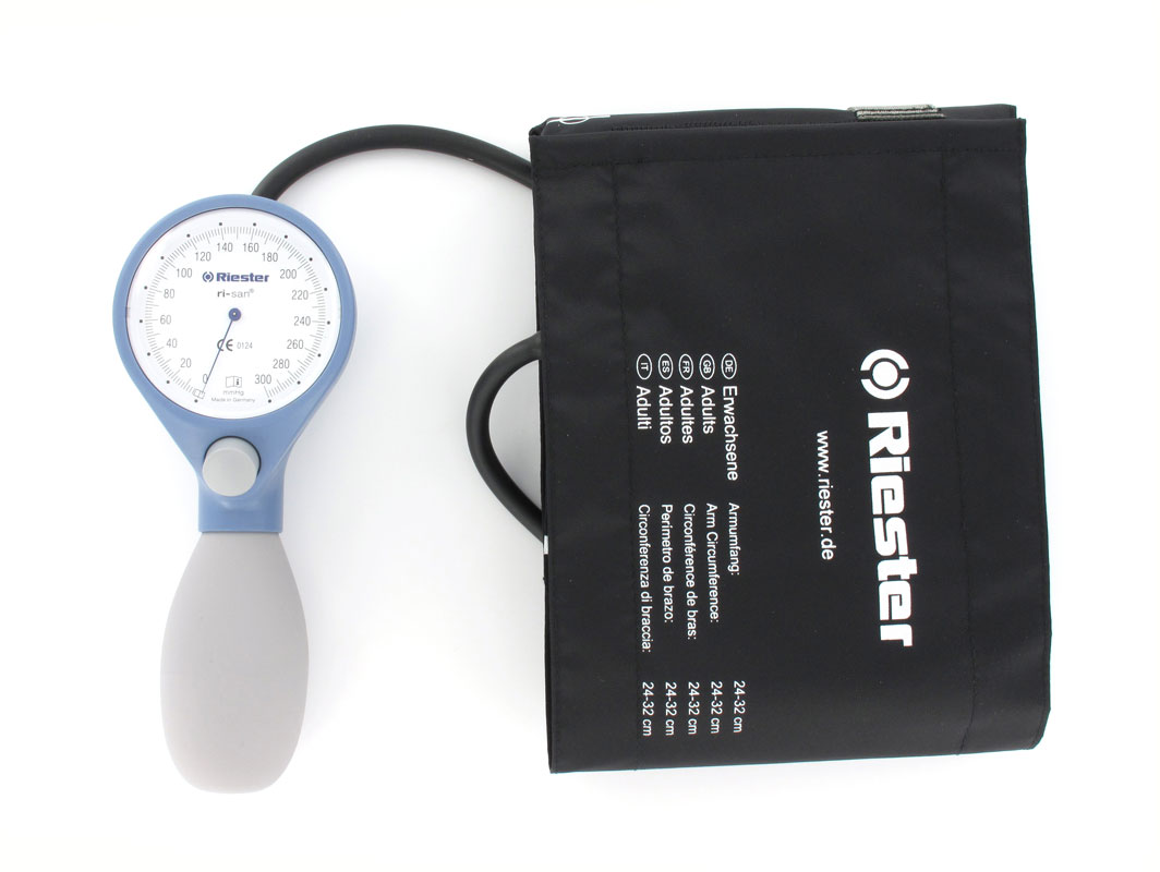 Sphygmomanomètre en maille palmier ergonomique de haute qualité. Valve de décompression aisément contrôlable du bout des doigts.
