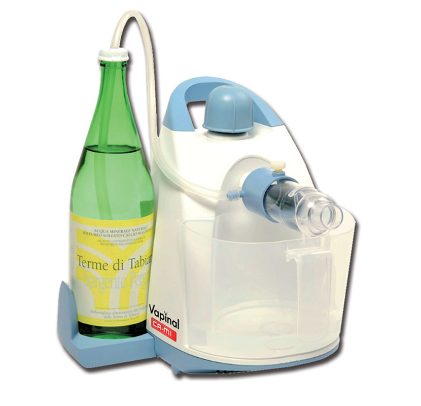 Dispositif pour inhalation thermale à jet chaud idéal pour les traitements à domicile. En matière plastique pour garantir l'isolation thermique et électrique. La chaudière est en acier inoxydable avec une résistance armée et un thermostat de sécurité.