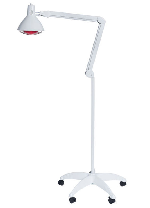 Lampe de thérapie infrarouge qui génère une chaleur pénétrante, utile pour soulager les douleurs musculaires et articulaires liées aux contractures et aux tensions.