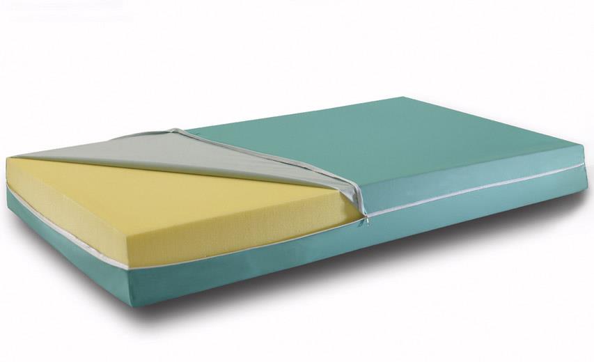 Matelas en mousse de polyuréthane, densité 35 kg/m2. Il ne se déforme pas, il est antibactérien, antifongique et autoclavable à 135°C.