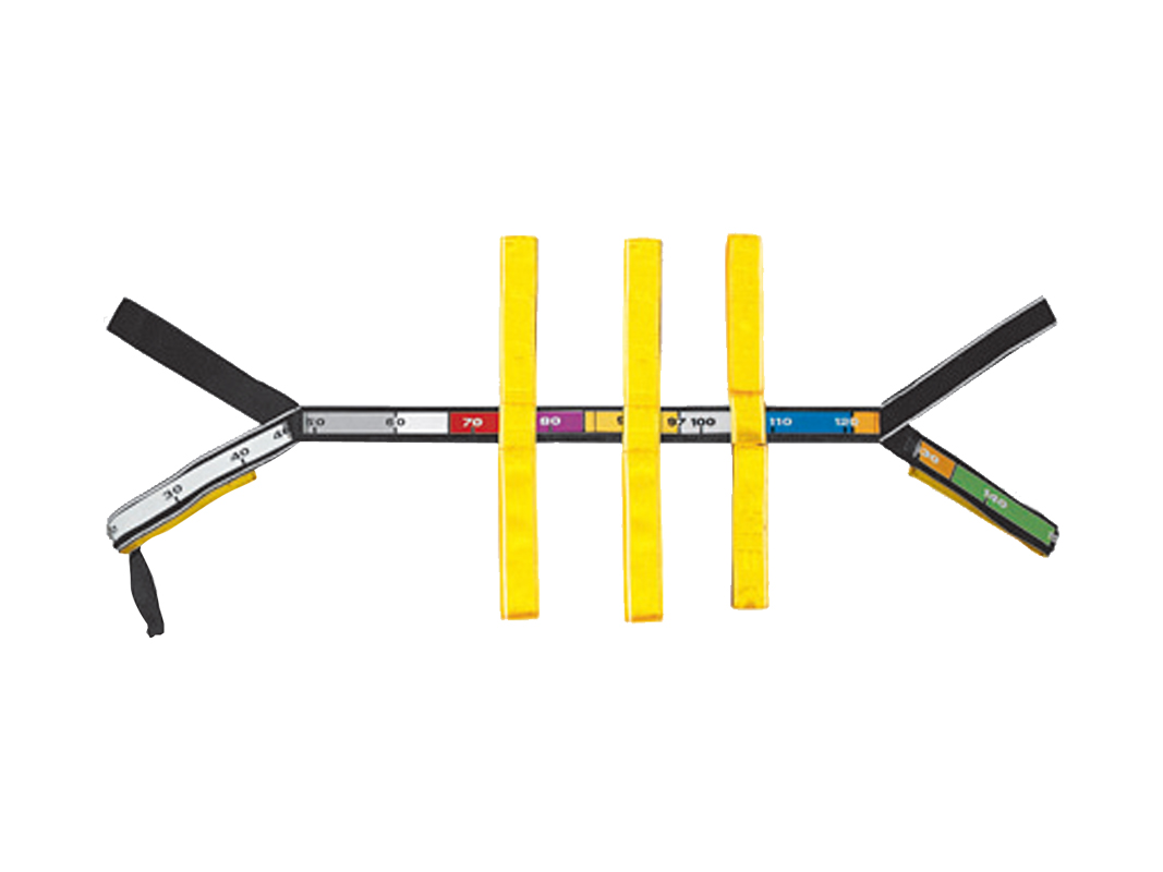 Système pédiatrique de sangles araignée. La sangle centrale peut être utilisée pour prendre les mesures.