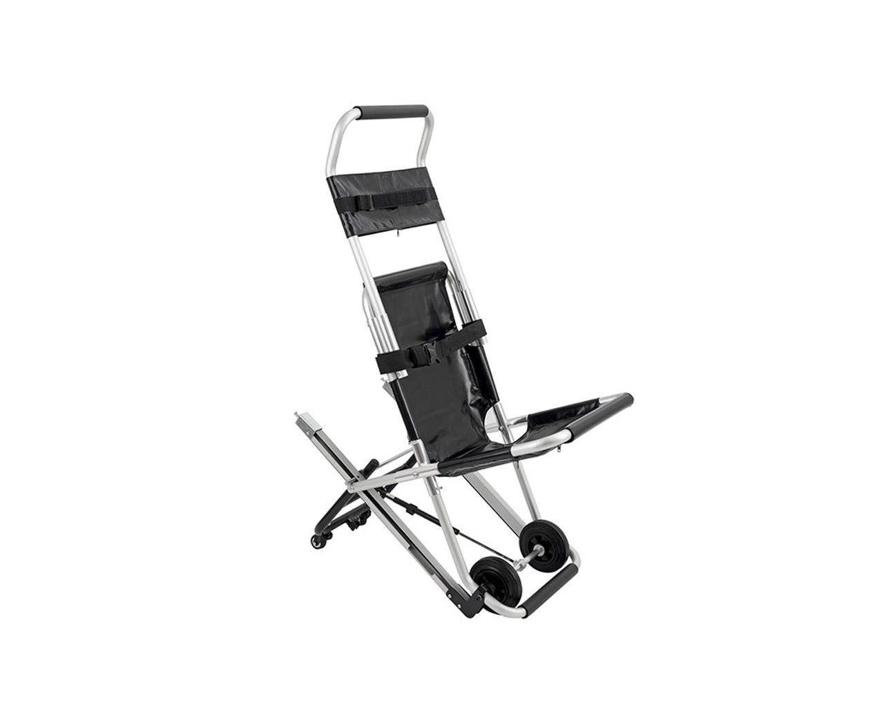 Chaise d'évacuation pliable en alliage d'aluminium hautement résistant et PVC imperméable, conçue pour monter et descendre les escaliers en transportant les patients.