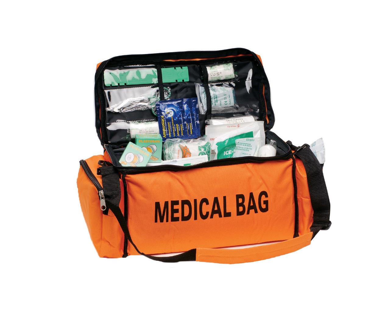 Kit spécialement conçu pour les premiers secours dans les clubs sportifs (tennis, piscines, salles de gym, etc.). Le sac, en nylon souple avec bandoulière, a deux poches latérales et fermeture éclair.