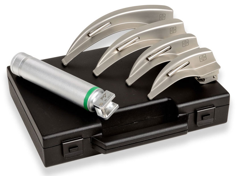 Laryngoscope ligne Gima Green à fibre optique détachable avec lumière LED.