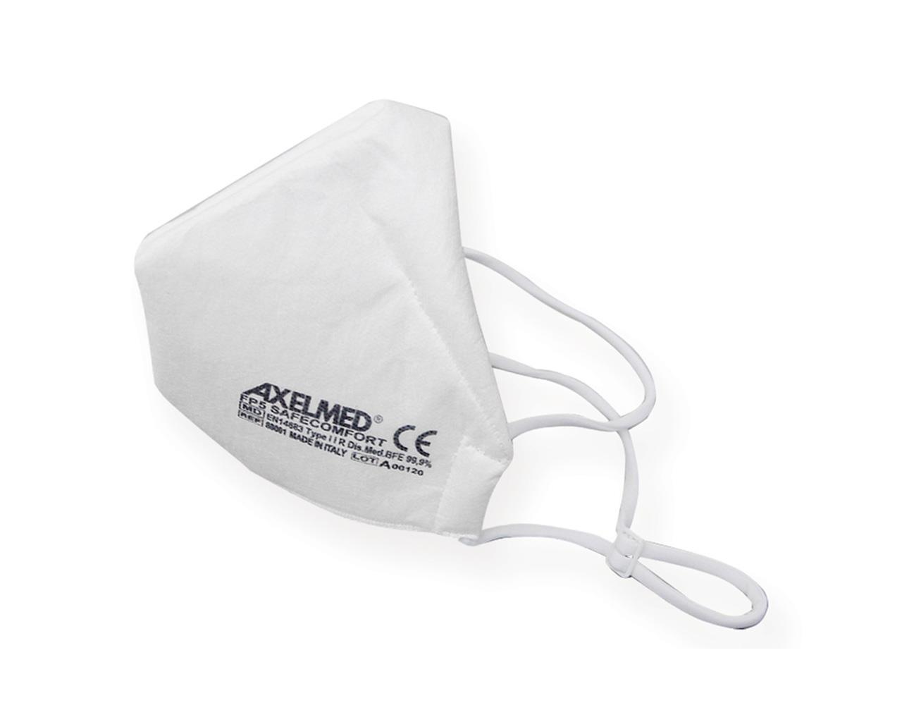 • Dispositif médical CE EN 14683 Type II R • Couleur : Blanc • Modèle déposé en EU EUIPO No. 007776133-001 – (P.P. PCT) • Fabriqué en Italie • Le tissu hypoallergénique n’absorbe pas l’halitose ni l’humidité expirée • Excellente transpirabilité avec couche intermédiaire spongieuse pour dissipation de la chaleur expirée • Réutilisable pendant des mois et lavable en machine (40° C - 35 minutes) - ATTENTION : à cause de la propriété anti-giclée de la couche externe, le timbre sur le masque pourrait s’effacer après le lavage. Cela n’altère pas les propriétés filtrantes. • Elastiques tubulaires souples réglables avec un système de glissage auto-adaptable (très longues : peuvent être resserrés à l’extérieur de la capuche de la combinaison protectrice, des visières de protection ou du couvre-chef) • La forme spéciale de la plaquette permet de positionner les lunettes de protection sur le masque pour éviter la condensation